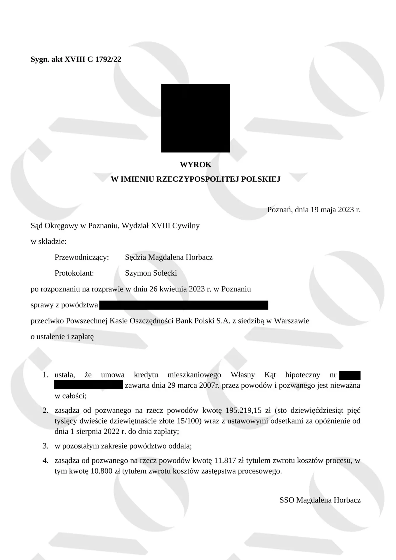 Wreszcie, pierwsze wyroki w Polsce już zapadają na korzyść kredytobiorców – wspominaliśmy o unieważnieniu kredytu WIBOR przez Sąd w Suwałkach czy “odwiborowieniu” kredytu przez Sąd w Warszawie. To precedensy, które z pewnością wpłyną na kolejne orzeczenia.
